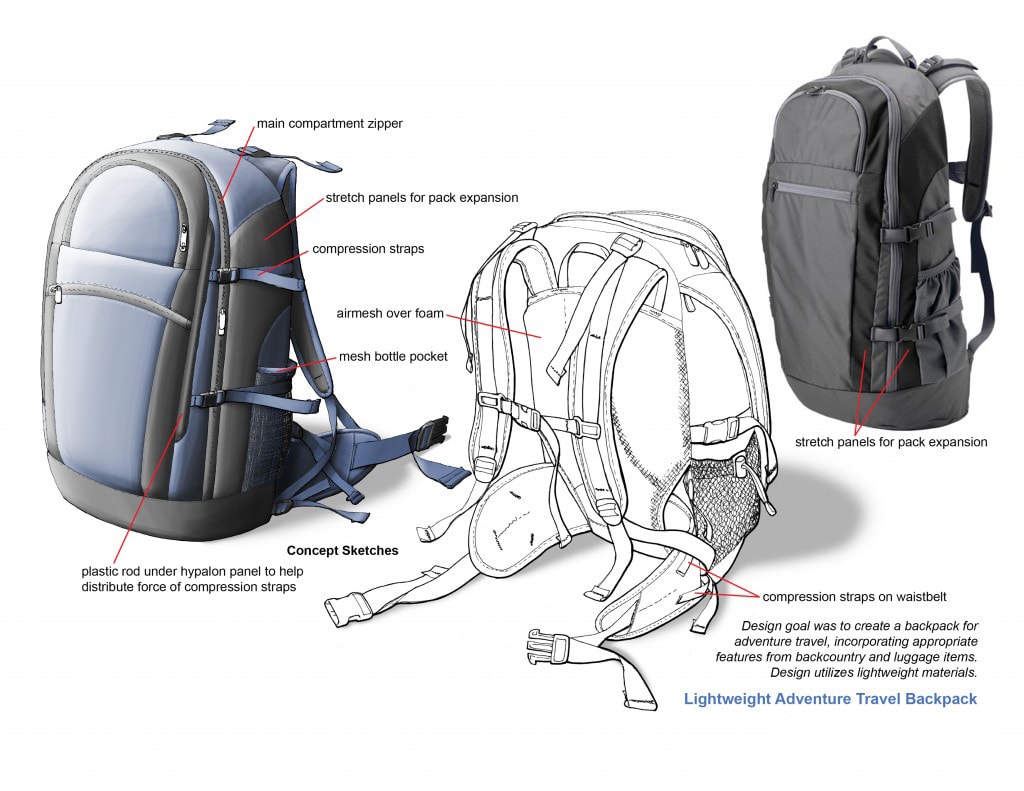 Lightweight Adventure Travel Backpack sketch